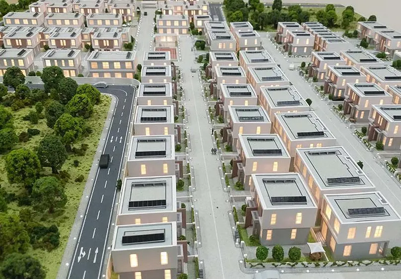 Description: A modern residential complex finished with premium tiles, smart lighting systems, and Italian bathware.